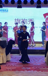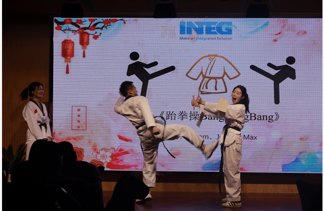 不得不说我们INTEG佳人们,太美了叭,怪不的说“城门外危难之间~英雄一怒为红颜~就只看了你一眼,便决定了永远~”下面有请仓库部的Elvis给我们带来一首好听的歌曲《醉千年》 欣赏完了旗袍秀和歌曲想不想再来一个劲爆的节目。跆拳踢木板+跆拳舞BangBangBang
