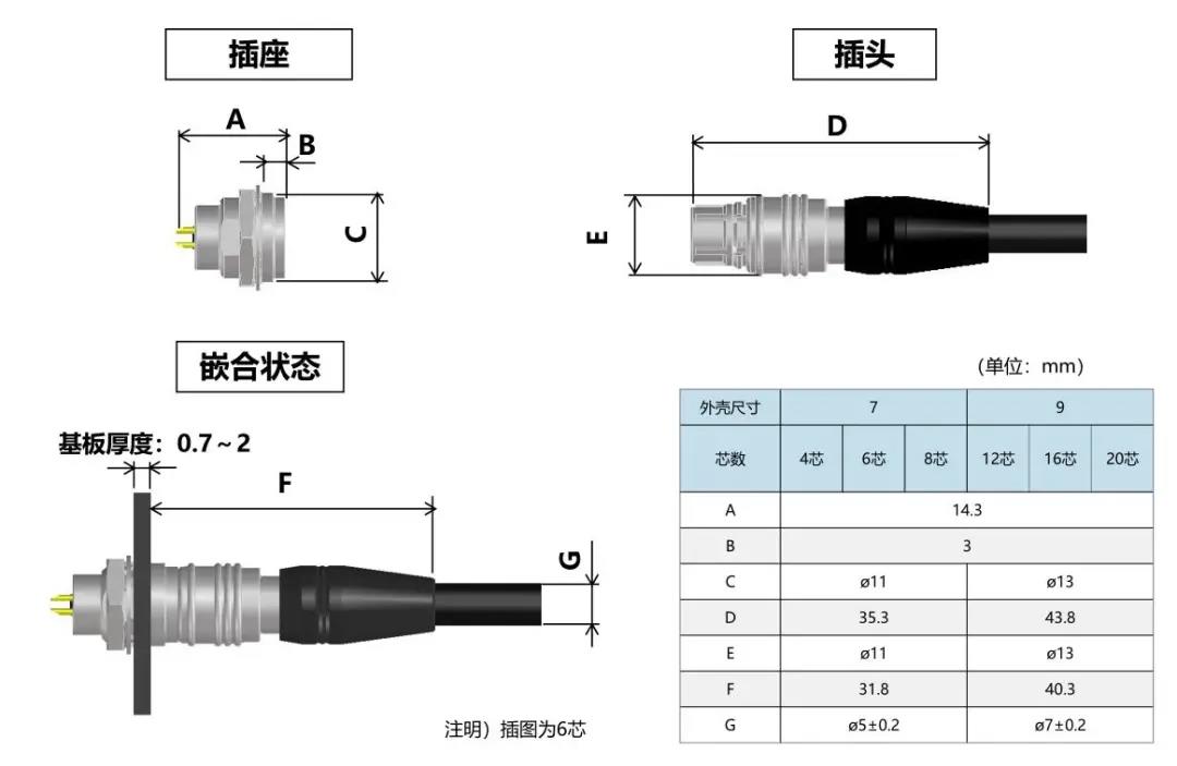 特点 1 超小级高密度圆形连接器 2 具有良好操作性的推拉锁 3 EMI对策设计 4 支持Cat.5e(1Gbps)高速以太网※ 5 丰富的选型 ※传输性能可根据线缆・引脚尺寸・结线方法而改变, 线束后确认实力。